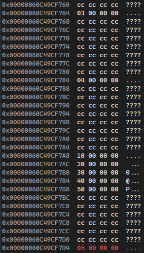 실제 메모리에 어떻게 들어가는지 확인해보자.