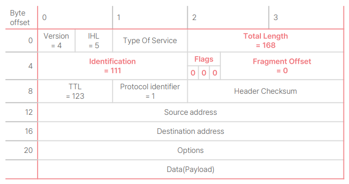 Flags : 0으로 설정하여 패킷이 단편화 되어 있지 않다는 것을 나타낸다.