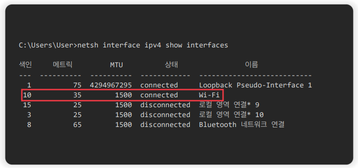 - netsh interface ipv4 show interface 명령을 통해 MUT를 확인할 수 있다.