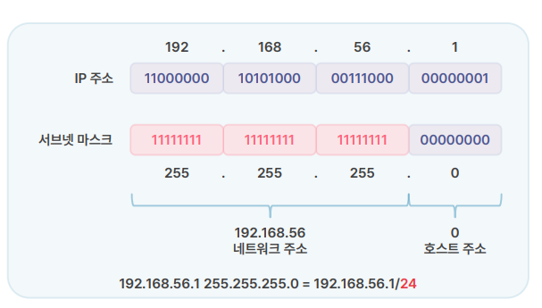 Prefix로 표현하면 192.168.56.1/24와 같이 표기할 수 있다.
