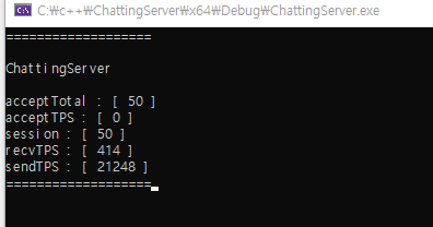 50개의 더미클라이언트를 접속하고 sendPacketTPS와 recvPacketTPS를 재어보니 아래와 같았다.