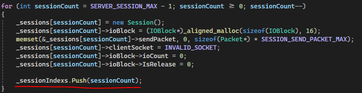 클라가 서버에 접속하면 index를 하나 꺼내서 Session을 찾은 후에 초기화 해준다.