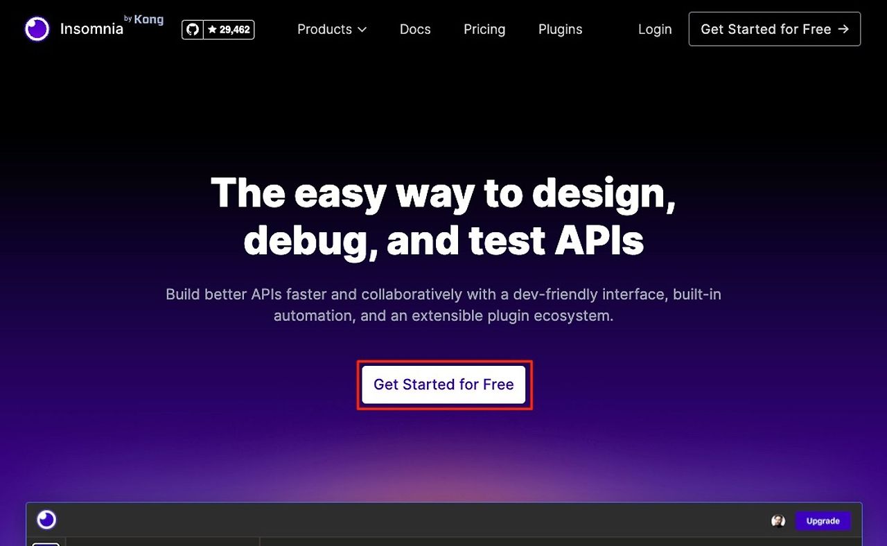 1. Insomina 공식 사이트에서 Get Started for Free를 눌러준다.