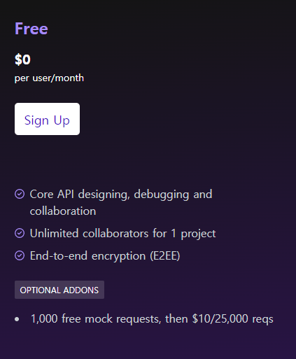 2. Free 탭에 있는 Sign Up을 눌러 회원가입을 한다.