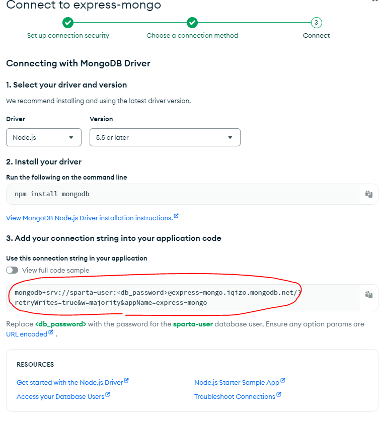 2.7 Go to Database를 클릭해 MongoDB 생성을 완료