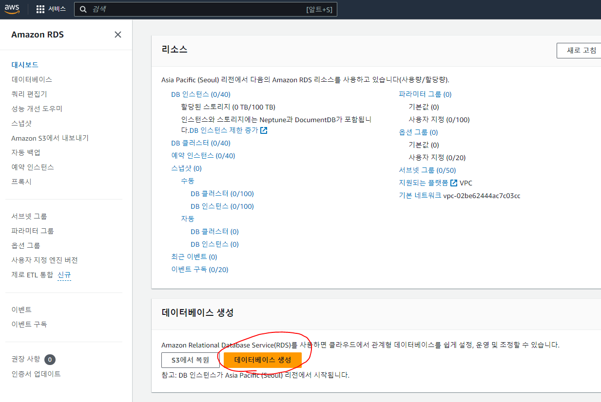 - RDS를 검색한 후 클릭한다.