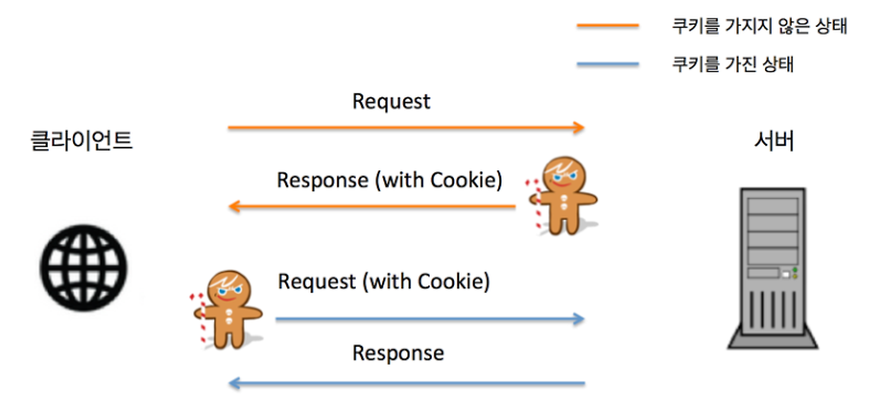 클라이언트는 서버에 요청 ( Request )을 보낼 때 자신이 보하고 있는 쿠키를 자동으로 서버에 전달하게 된다.