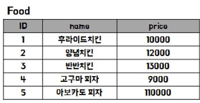 여기서 테이블이란, 여러개의 '열( column )'과 '행( row )'을 가지는데, 이는 엑셀의 표와 유사한 형태다.
