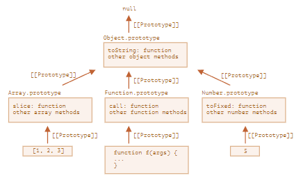 그런데 Object.prototype에도 메서드 toString이 있다. 이렇게 중복 메서드가 있을 때는 체인 상에서 가까운 곳에 있는 메서드가 사용된다. Array.prototype 이 체인 상에서 더 가깝기 때문에 예시에서는 Array.prototype의 toString이 사용된다.